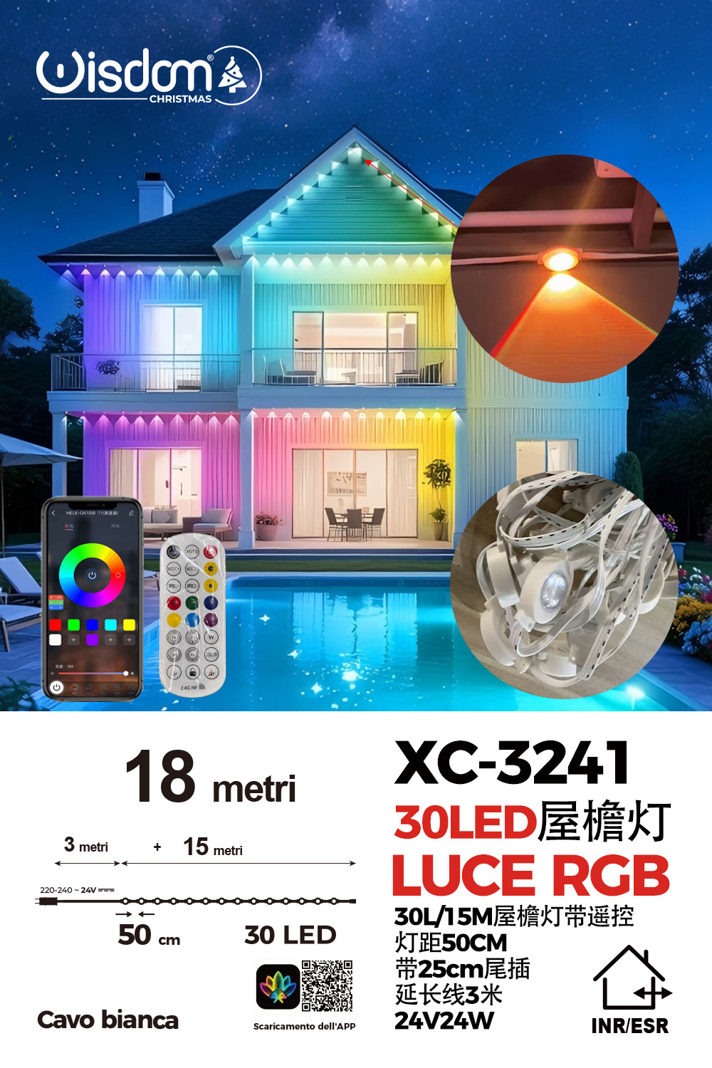 Luce striscia luminosa di grondaia con 30 LED RGB lunghezza 18 metri