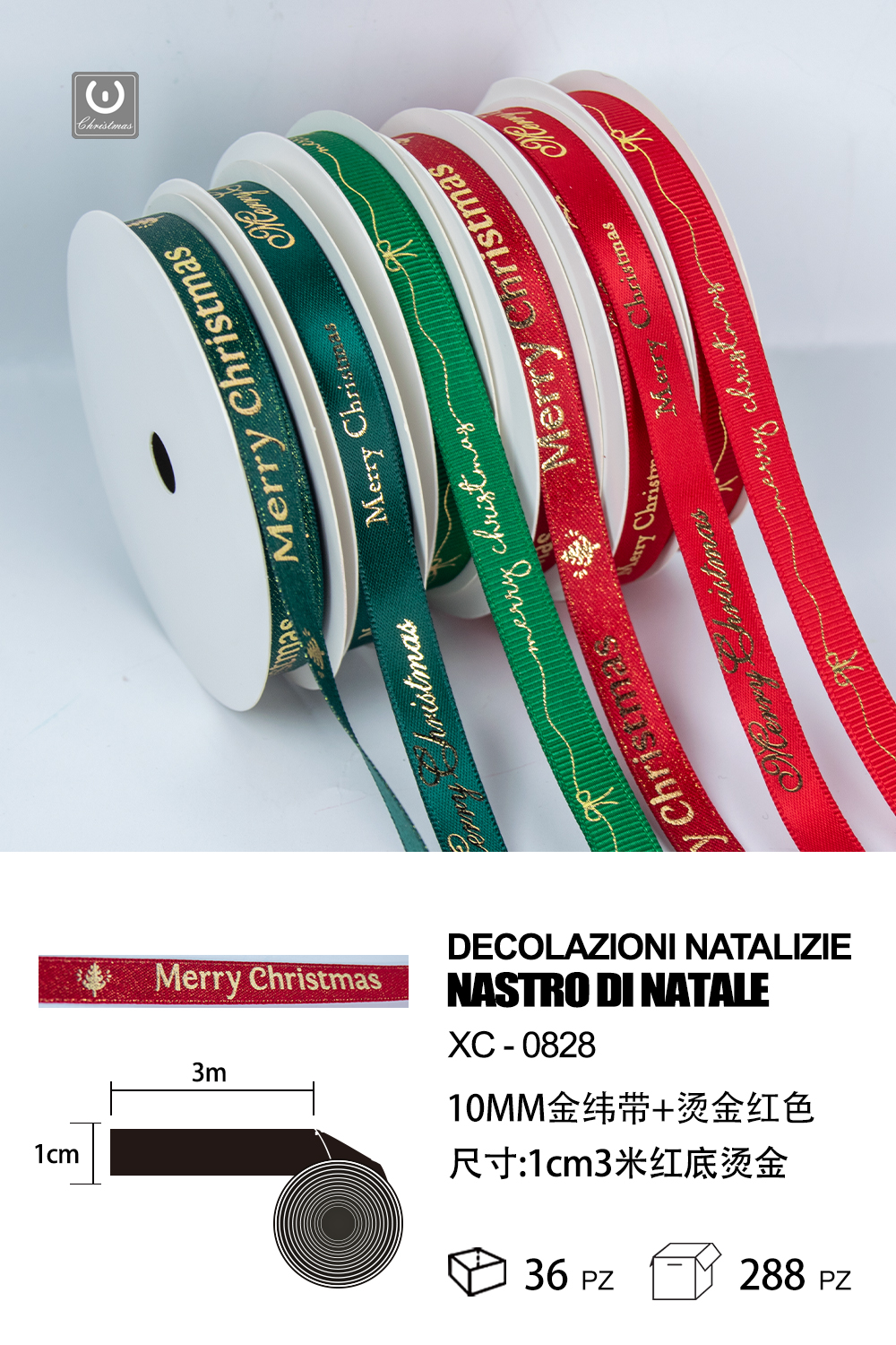 Nastro natalizo decorativo rosso con scritta merry christmas materiale poliestere dimensioni 1 cm x 3 mt
