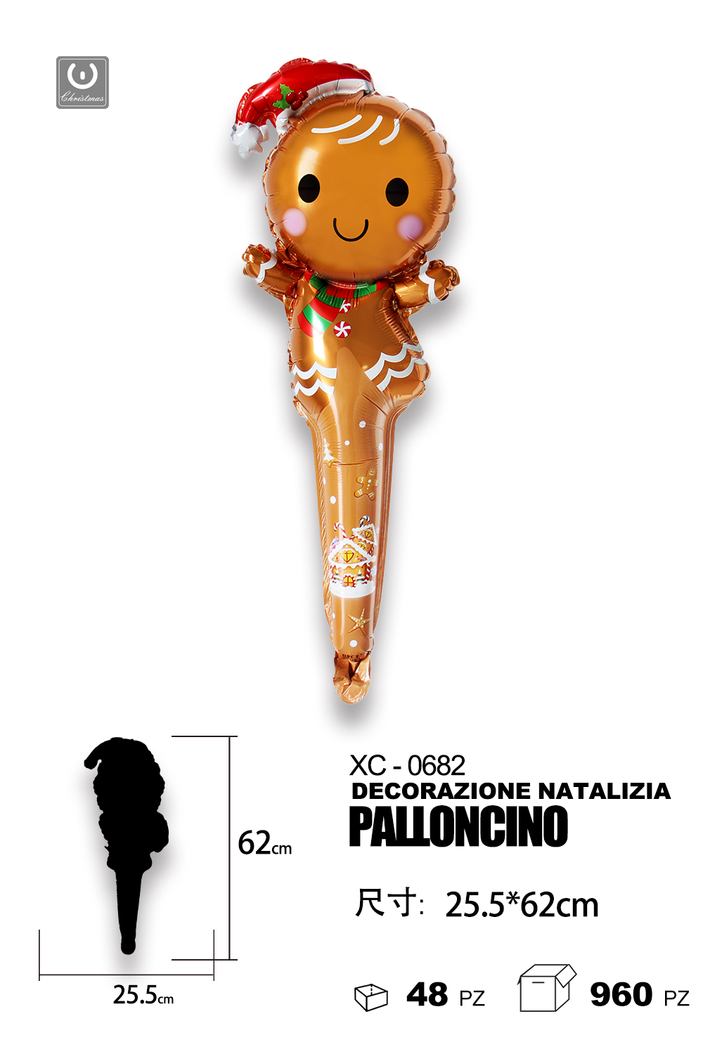 Palloncino decorazione natalizia a forma pan di zenzero ideale per addobbi dimensione 25x62cm