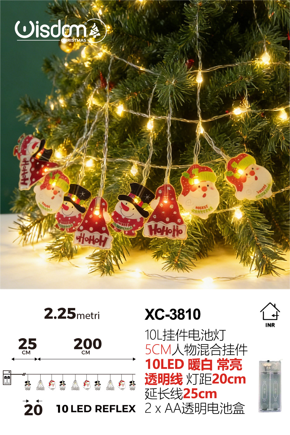 Pendente luminoso Natalizio 2,25 metri a forma di personaggi natalizi luminosi 10 LED REFLEX luce calda alimentazione a batterie (non incluse) uso interno