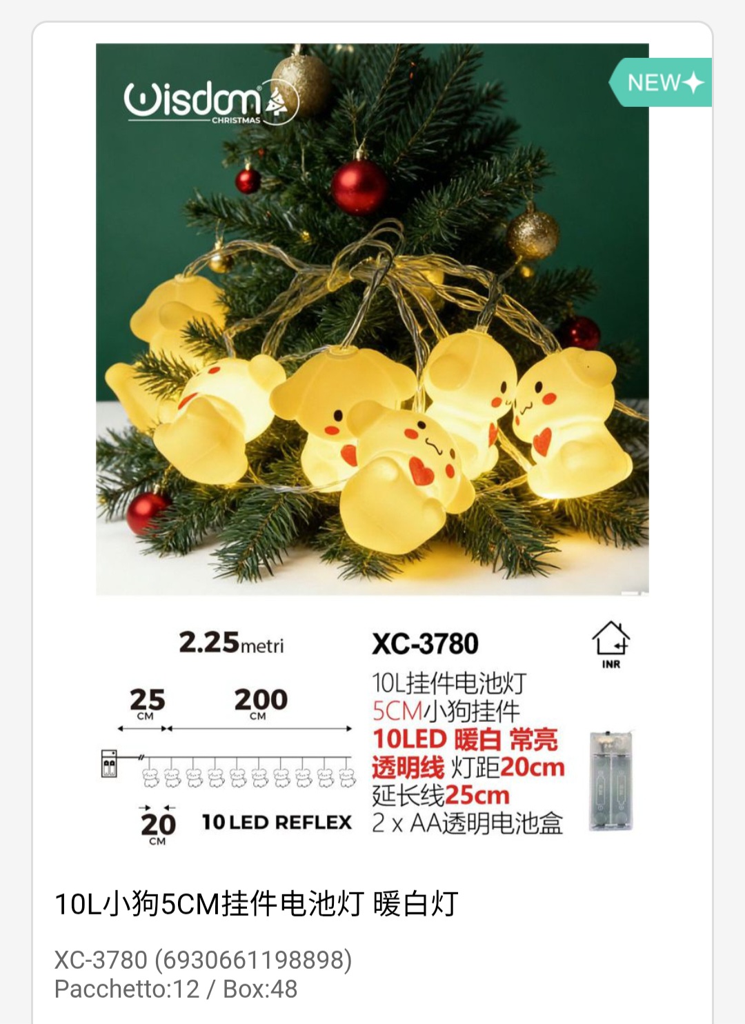 Pendente luminoso Natalizio 2,25 metri a forma di sfere pupazzi luminosi 10 LED luce calda alimentazione a batterie (non incluse) uso interno