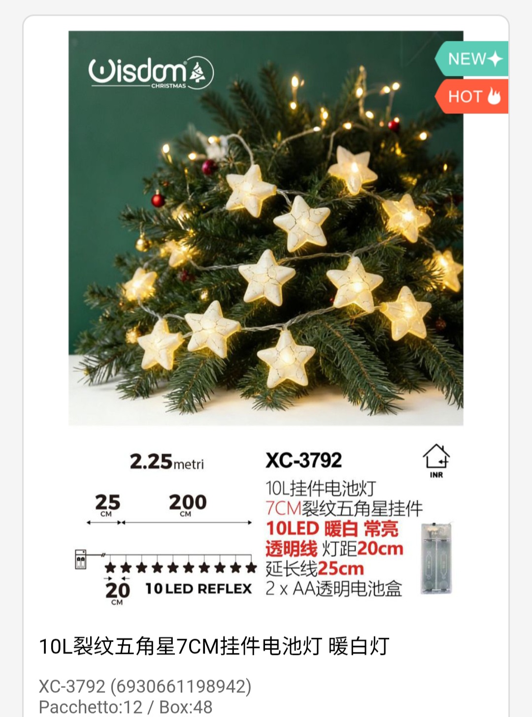 Recensisci per primo “Pendente luminoso Natalizio 2,25 metri a forma di stelle luminose 10 LED REFLEX luce calda alimentazione a batterie (non incluse) uso interno”