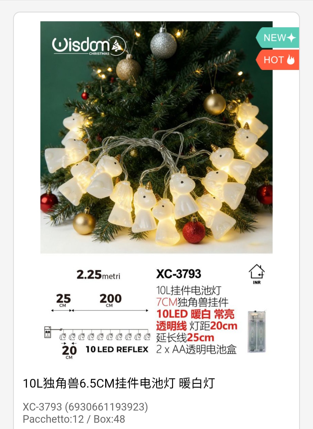 Pendente luminoso Natalizio 2,25 metri a forma di unicorni luminosi 10 LED REFLEX luce calda alimentazione a batterie (non incluse) uso interno