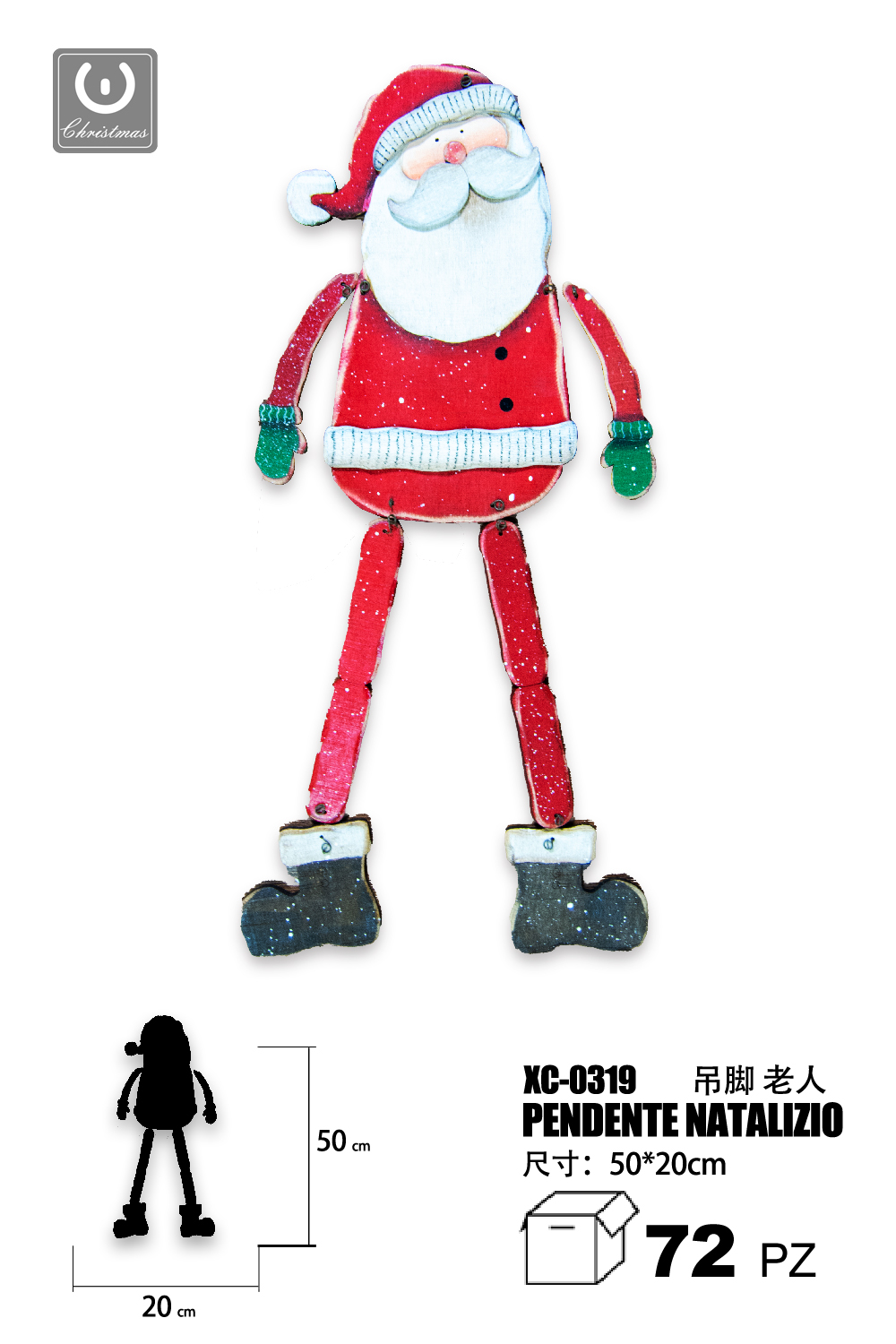 Pendente Natalizio in legno Babbo Natale da appendere fuori la porta dimensioni 50x20cm