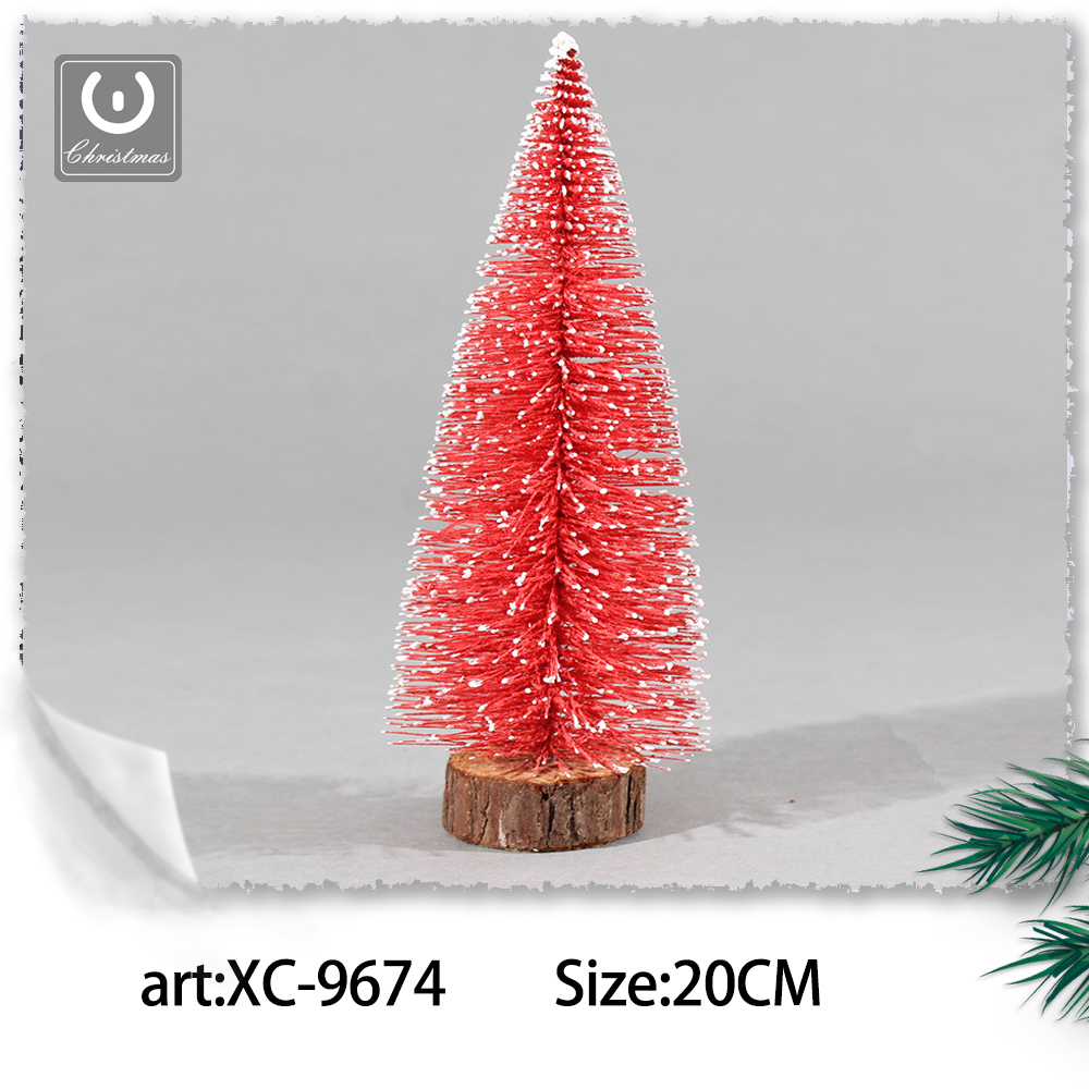 Piccolo albero artificiale da tavolo con base legno design a forma di pino colore rosso dimensione 25cmH