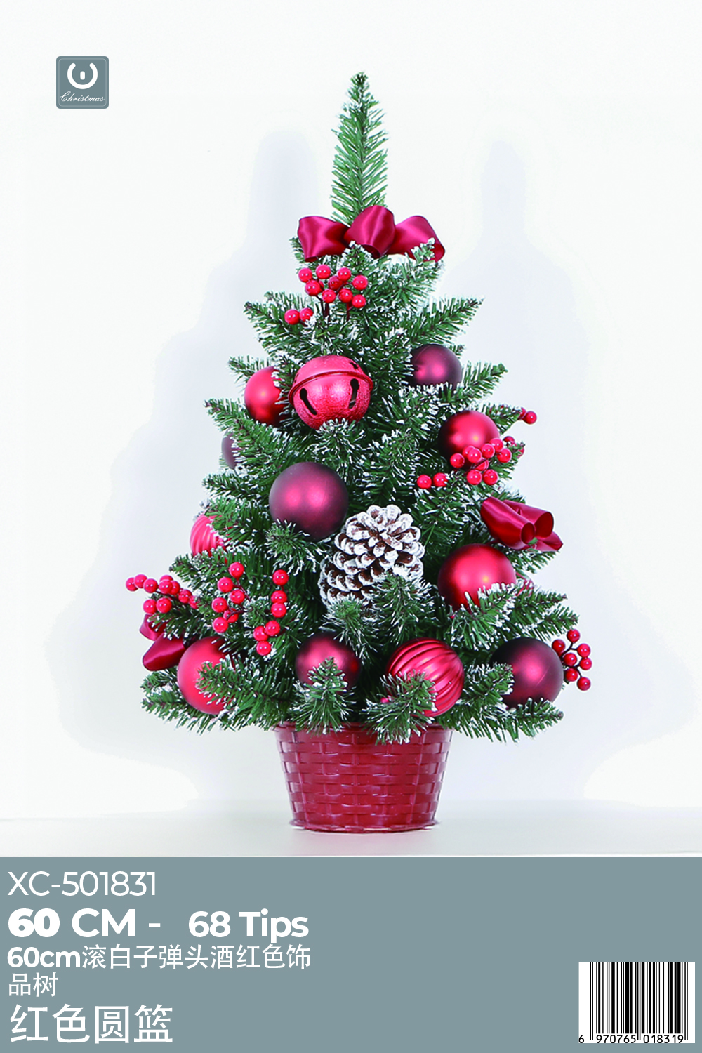 Piccolo albero verde con palle natalizie da tavolo con base legno e decorazioni dimensione 60cmH