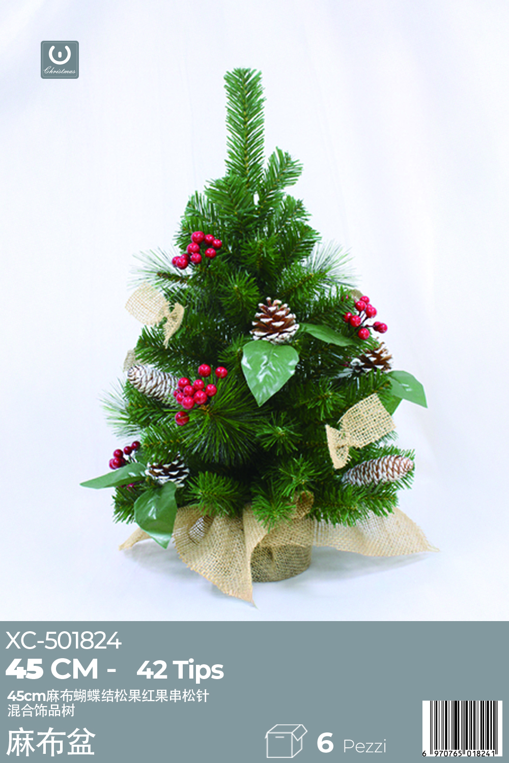 Piccolo albero verde da tavolo con base legno e decorazioni dimensione 45cmH