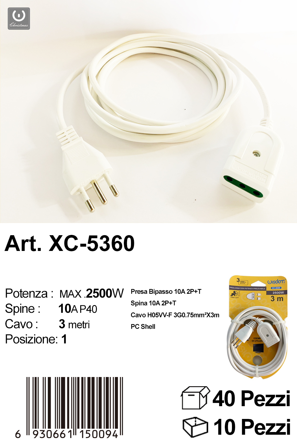 Prolunga elettrica a spirale colore bianca cavo da 3 metri potenza MAX 2500W