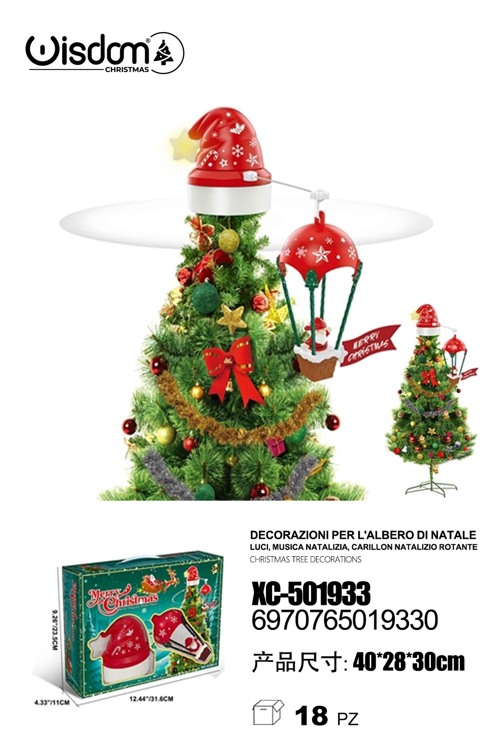 Puntale rotante Babbo natale con mongolfiera per albero di Natale con luci e musica