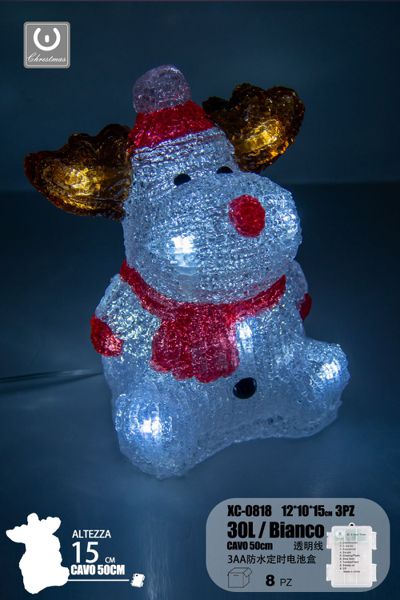 Renna , luminoso linea trasparente, 30 LED , luce Bianca, 15cm, con vano batteria impermeabile