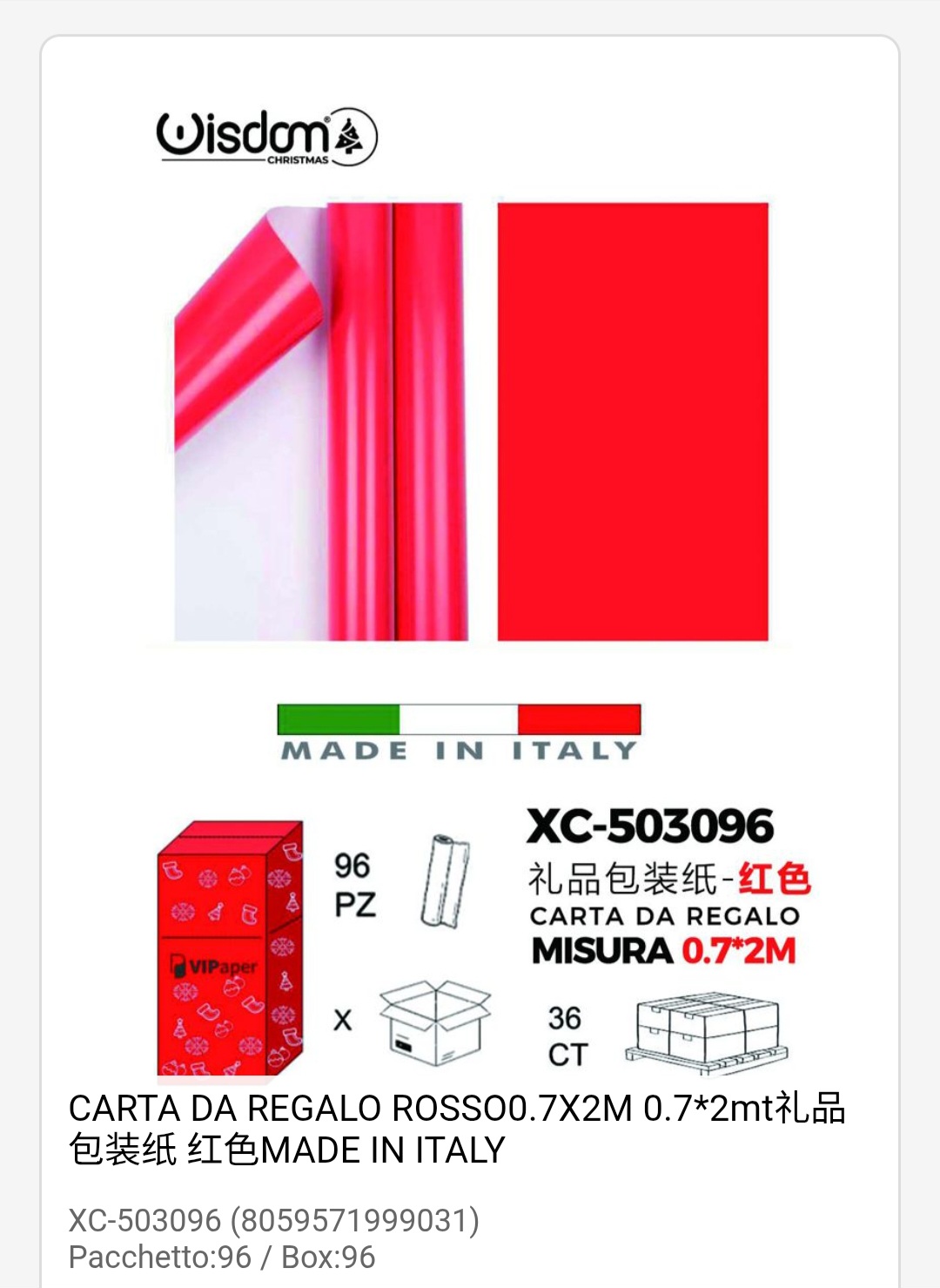 Rotolo carta da regalo natale rosso dimensioni 0,7x2Metri