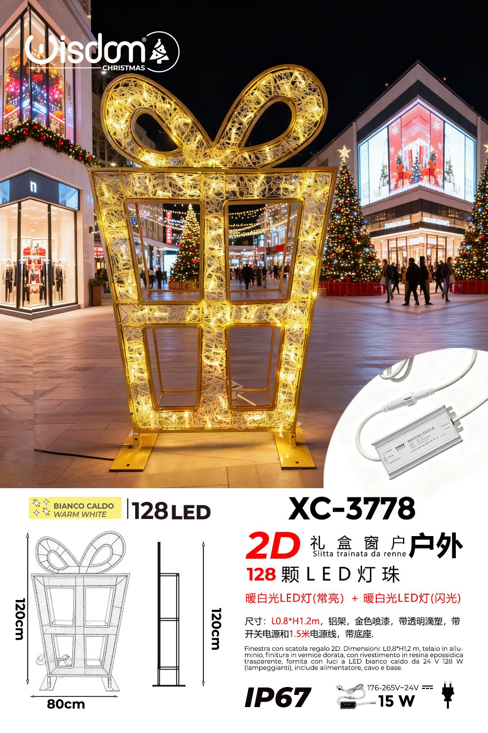 Recensisci per primo “Scatola Natalizia regalo 2D 128 luci LED calda fissa e intermittente struttura in alluminio dimensione 120X80cm IP67 per uso esterno”