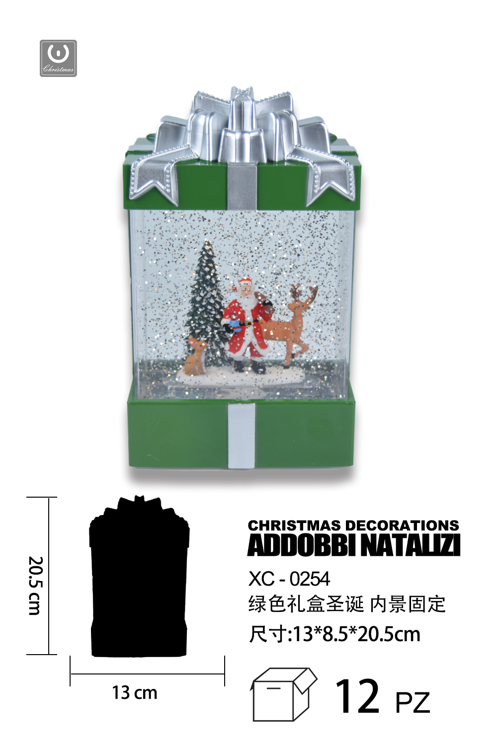 Scatola verde Natalizia in resina + Babbo Natale con luci effetto neve (20,5cmH)