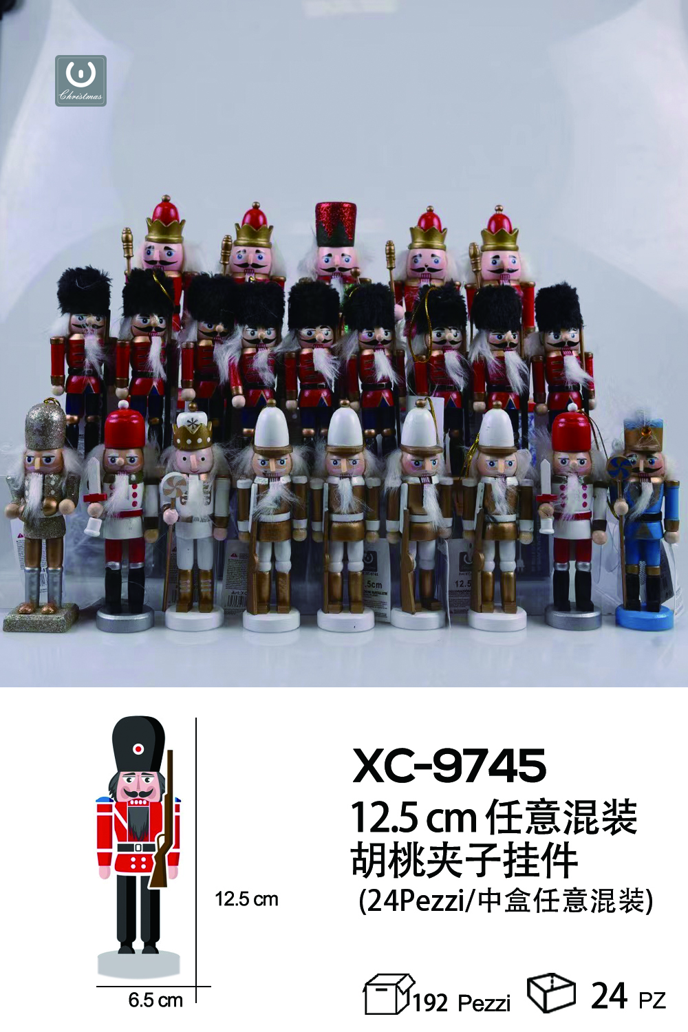 Set 24 pezzi mini schiaccianoci decorativi natalizi in legno altezza 12,5cmH