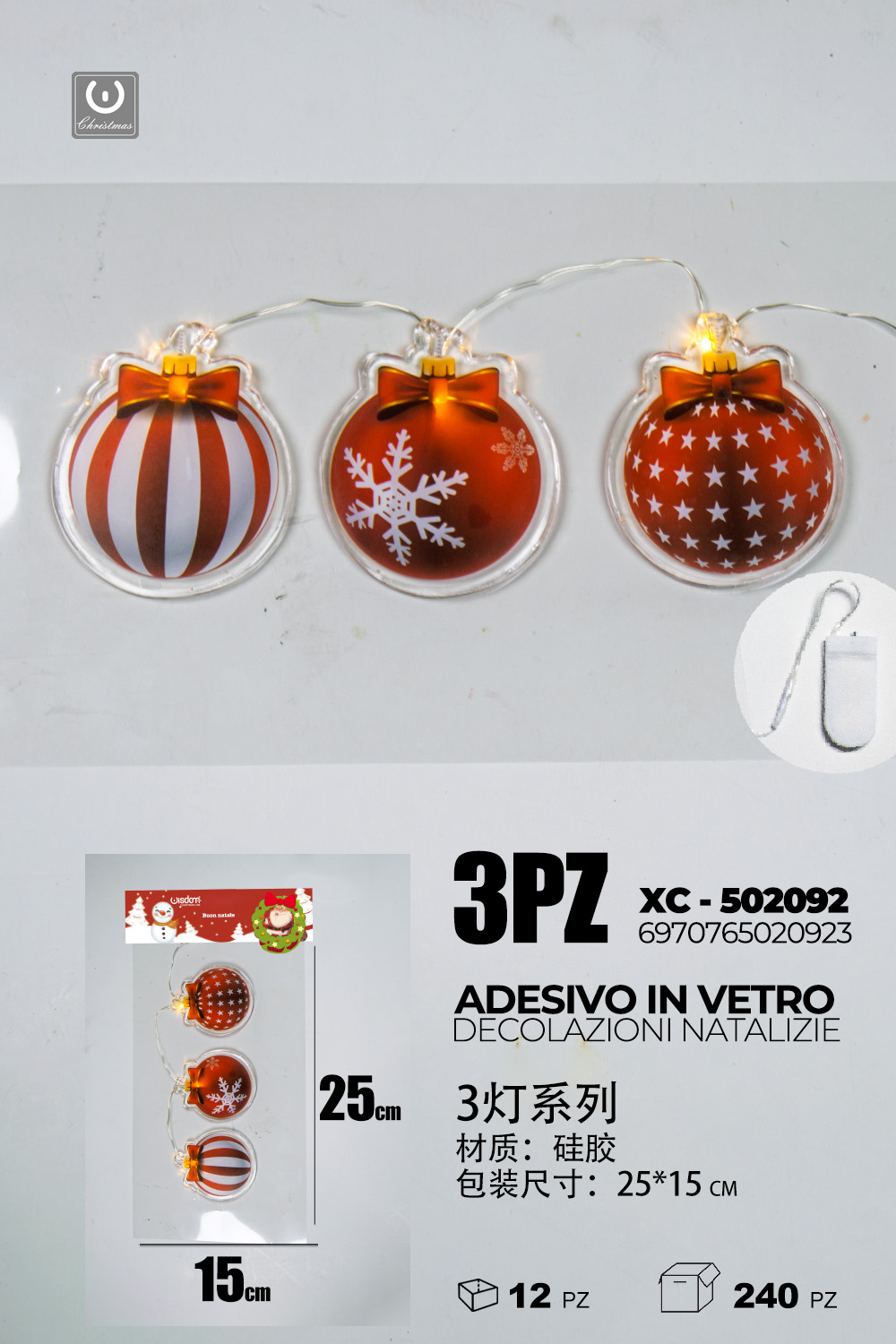 Set 3 pezzi adesivi natalizi forma palla di Natale con luce calda dimensioni: 25x15cm
