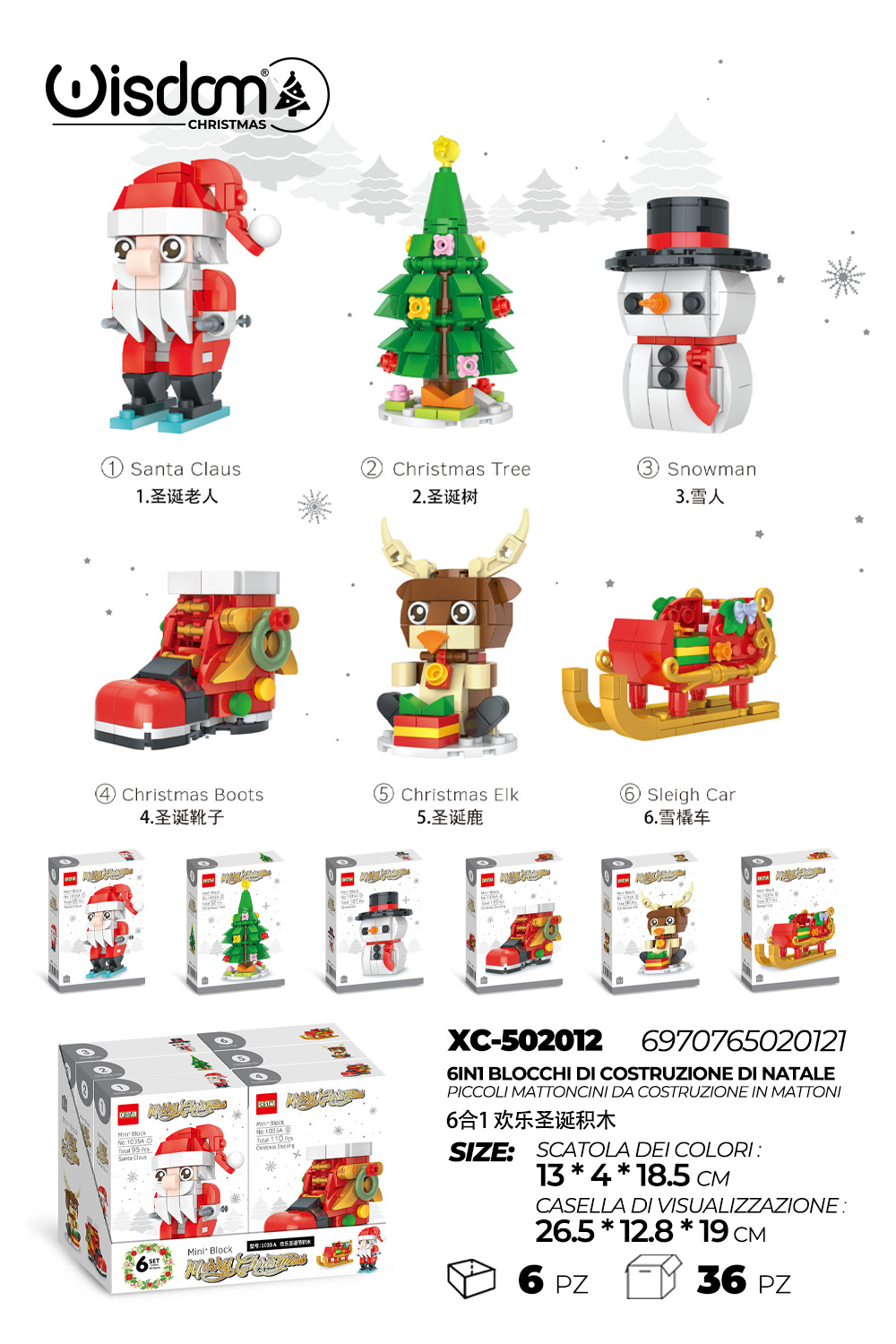 Set costruzione Lego con personaggi assortiti Natalizi 6in1
