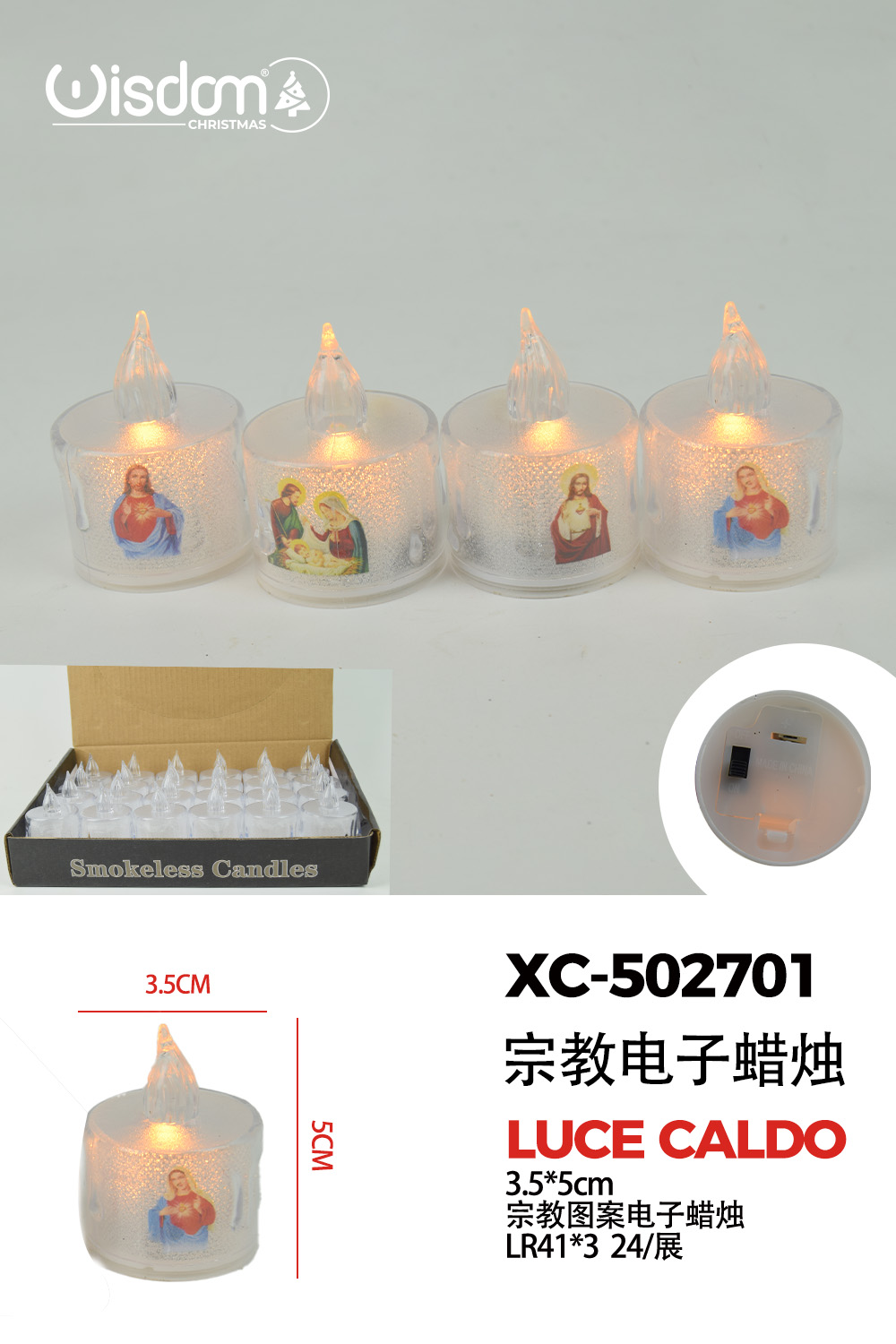Set di candele Natalizie campane forma religiose box da 24 pezzi (6,5cmH) luce calda a LED alimentazione a pile