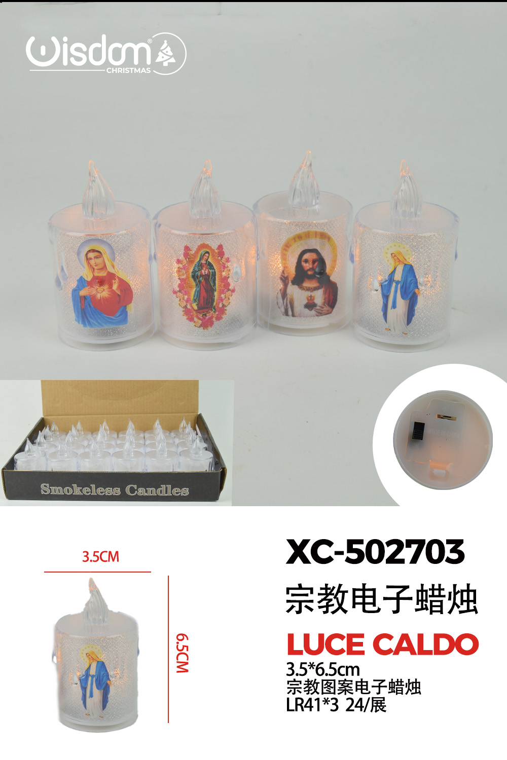 Set di candele Natalizie campane forma religiose box da 24 pezzi (8cmH) luce calda a LED alimentazione a pile