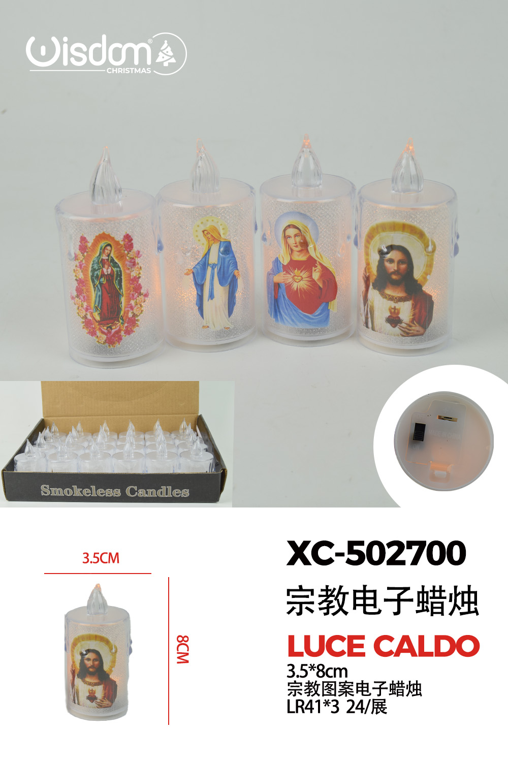 Set di candele Natalizie campane forma religiose box da 24 pezzi (8cmH) luce calda a LED alimentazione a pile