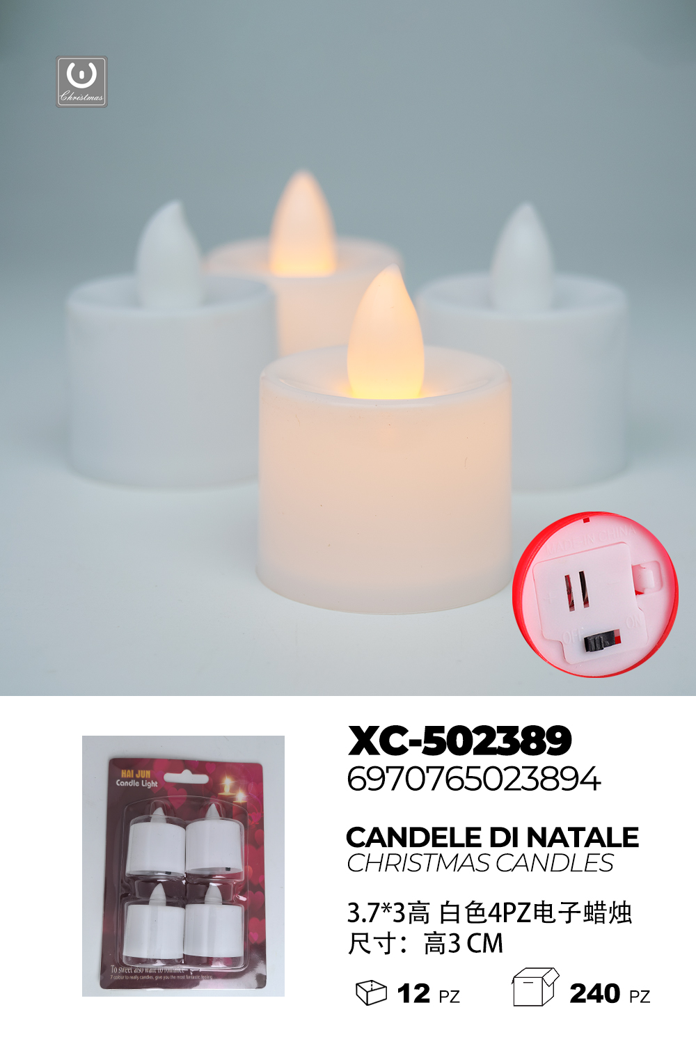 Set di candele Natalizie da 4 pezzi (3cmH) luce fredda a LED alimentazione a pile