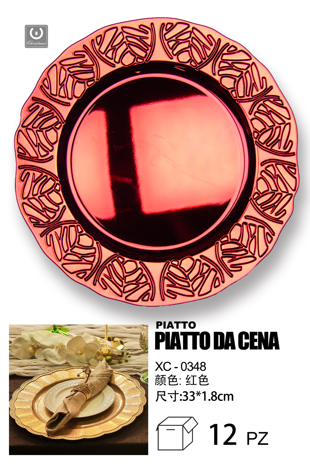 Sottopiatto Natalizio colore rosso effetto specchio per addobbi in cucina dimensioni 33×1,8cm