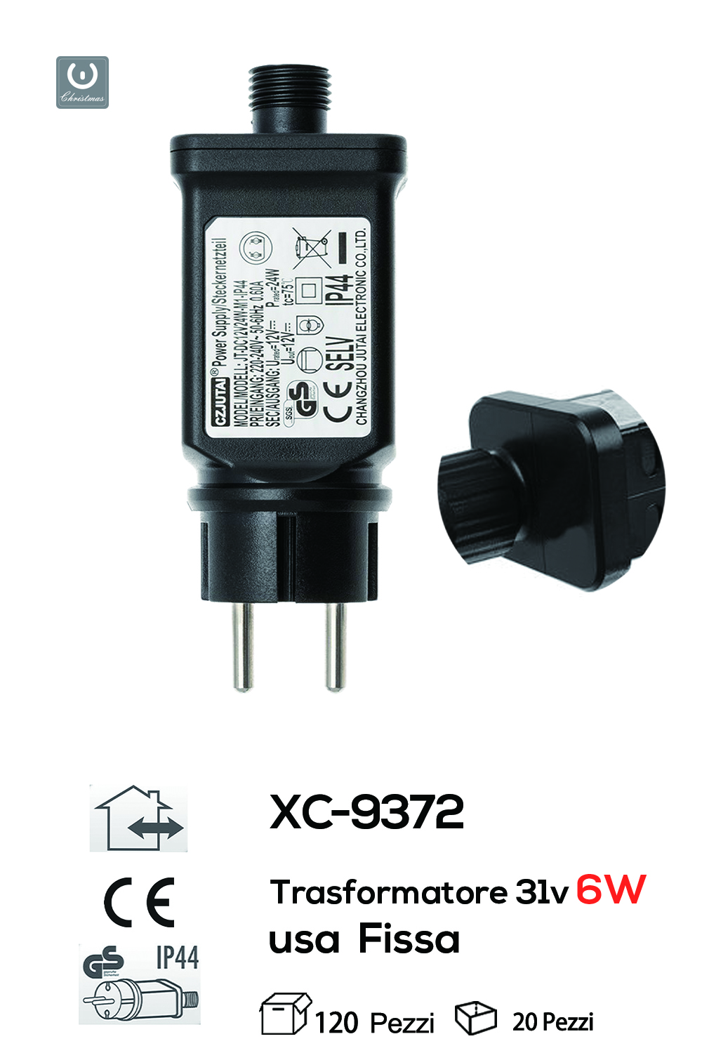 Spina trasformatore da 6w per luci decorative ad uso fisso con grado di protezione IP44 adatto per uso interno/esterno