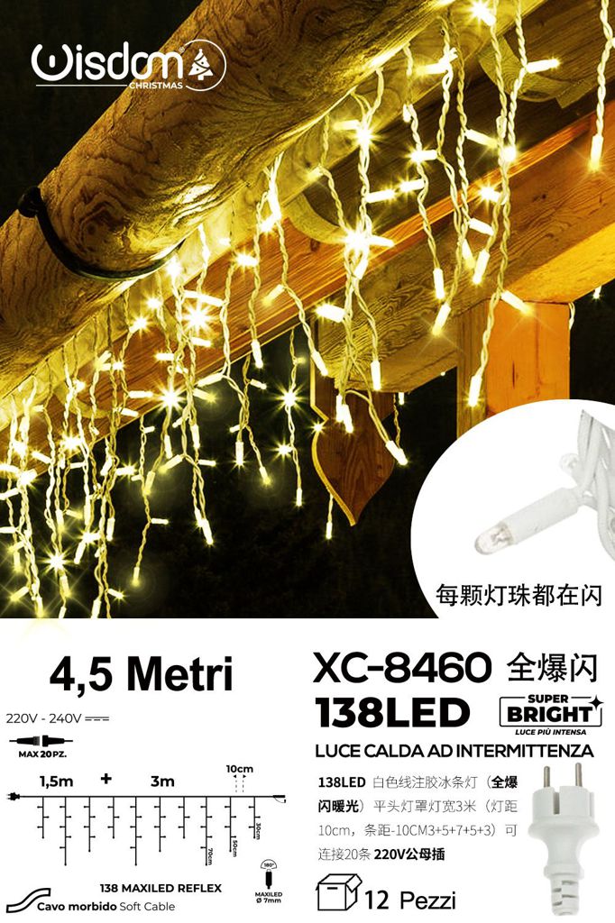 Tenda 138 MAXLED, luce calda intermittente,4,5 mt , cavo bianco, collegabile max 20 pz