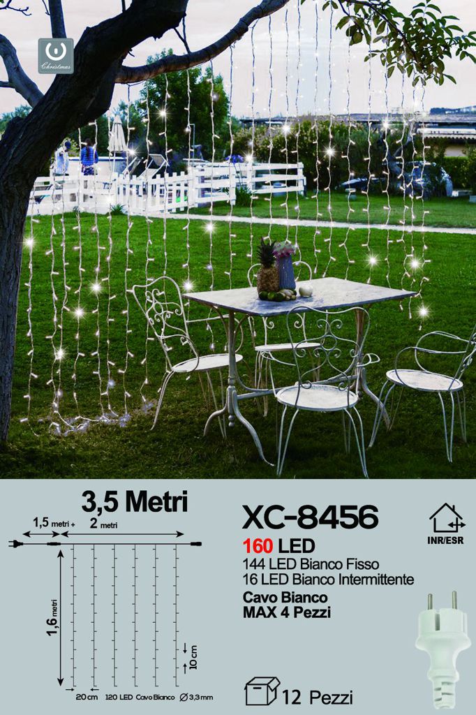 Tenda 160 LED, luce bianco + bianco intermittente,3,5 mt , cavo bianco, collegabile max 4 pz
