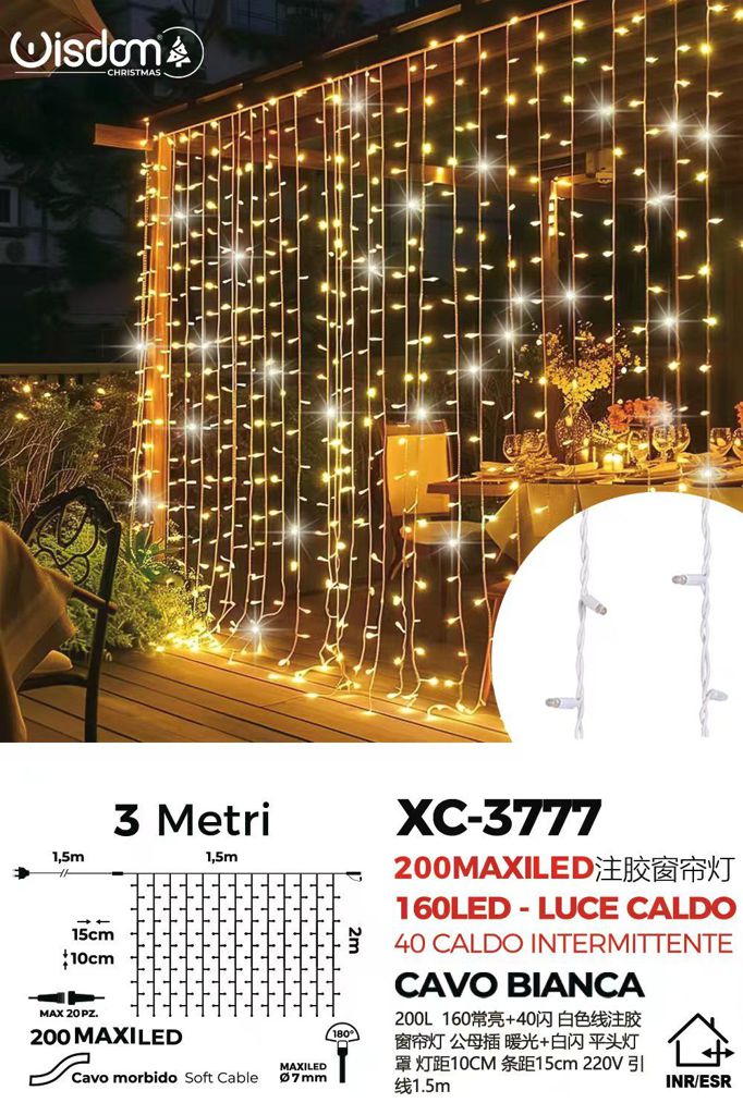 Tenda 200 MAXLED, luce caldo + caldo intermittente,3 mt , cavo bianco, collegabile max 20 pz