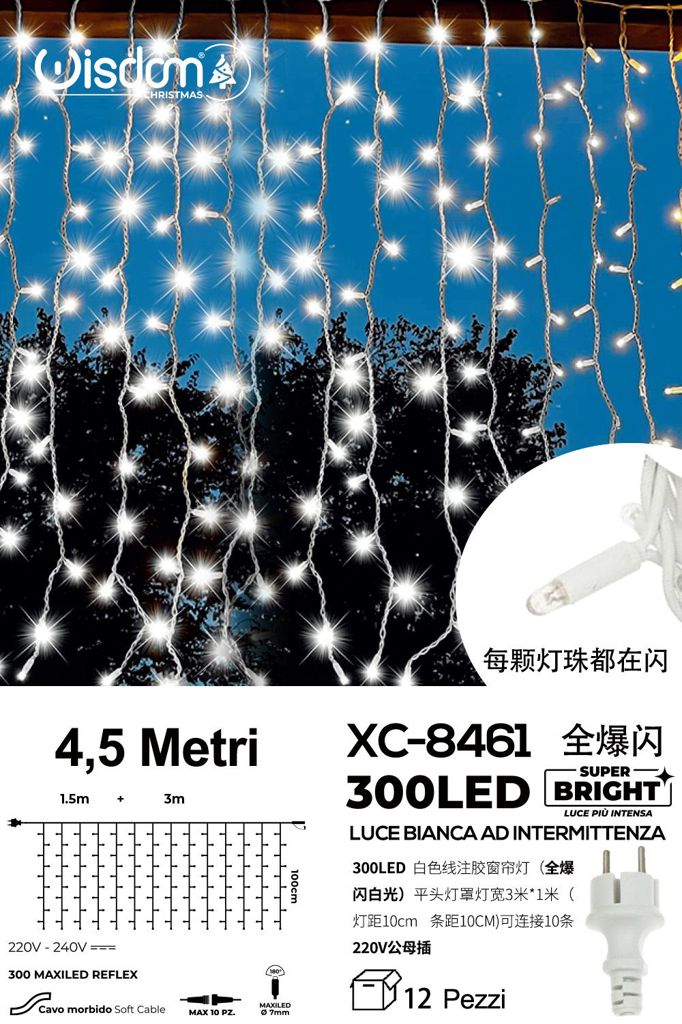 Tenda 300 MAXLED, luce bianca intermittente,4,5 mt , cavo bianco, collegabile max 10 pz