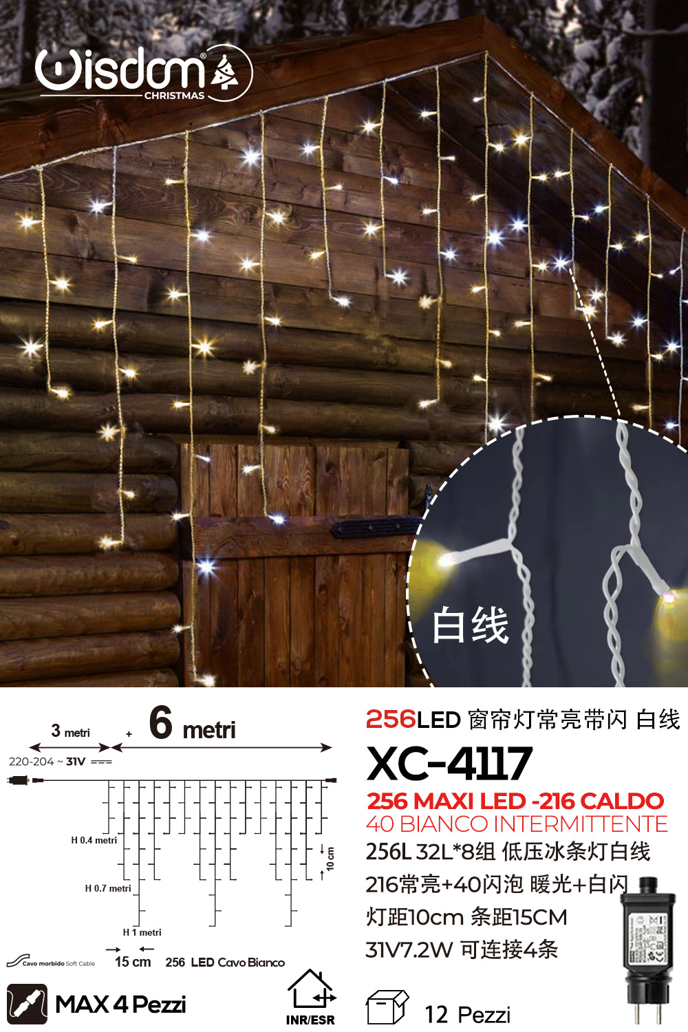 Tenda luminosa 6 metri con 256LED totali (216 luce calda fissa+40 luce intermittente bianca con flash) ip44 per uso interno esterno