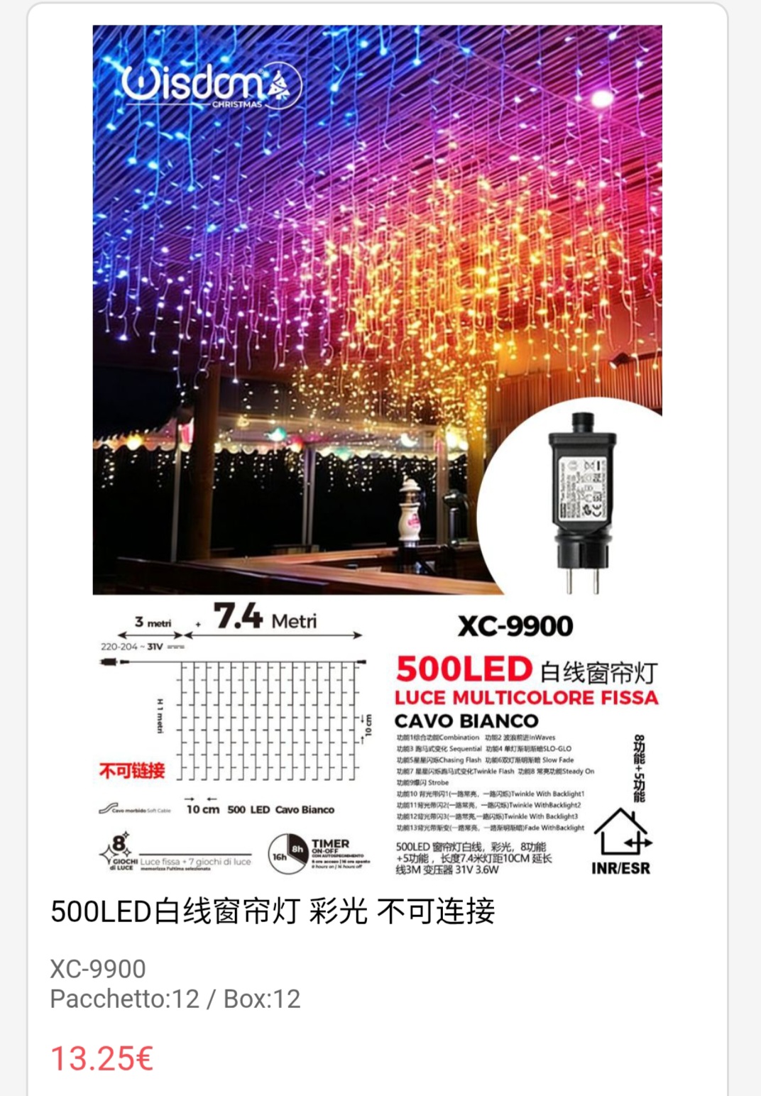 Recensisci per primo “Tenda luminosa 7,4 metri con 500LED luce multicolore fissa ip44 per uso interno esterno con 8 giochi luce e funzione timer on-off”