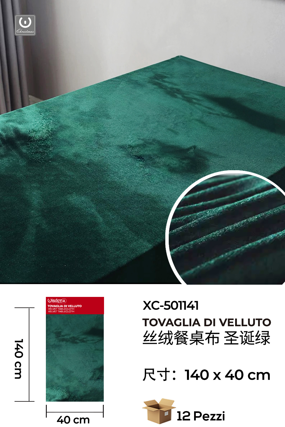 Tovaglia Natalizia di velluto colore verde dimensioni 140x140cm