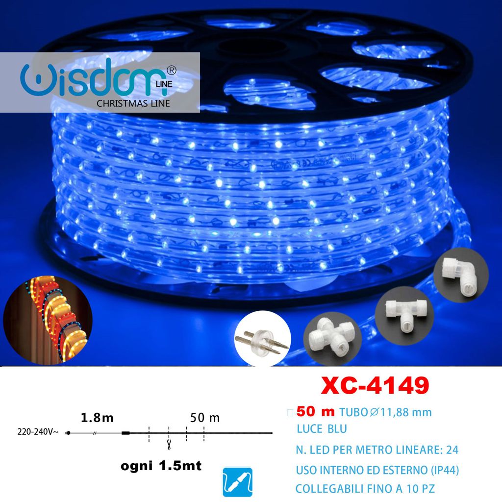Tubo luminoso 50 mt Luce Blu , tagliabile e collegabile fino 10 pz,